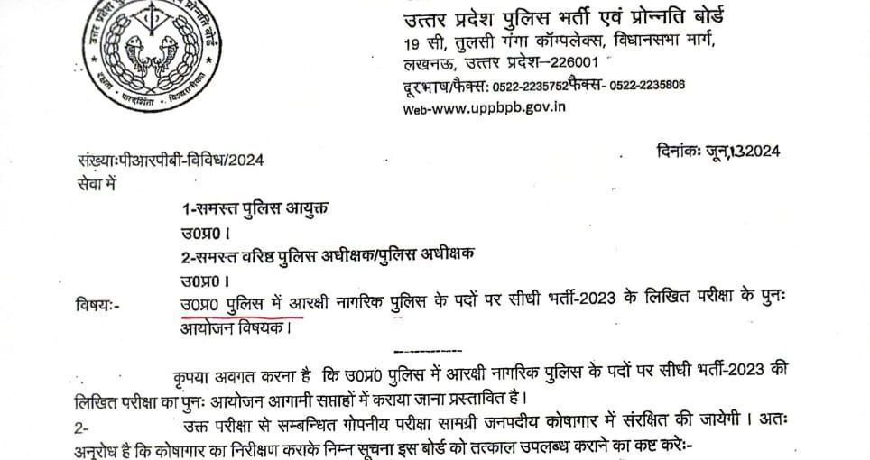 UP Police Re Exam Date Jari : July माह में अंतिम सप्ताह में आयोजित होगी परीक्षा, जानिए क्या हैं नोटिस...